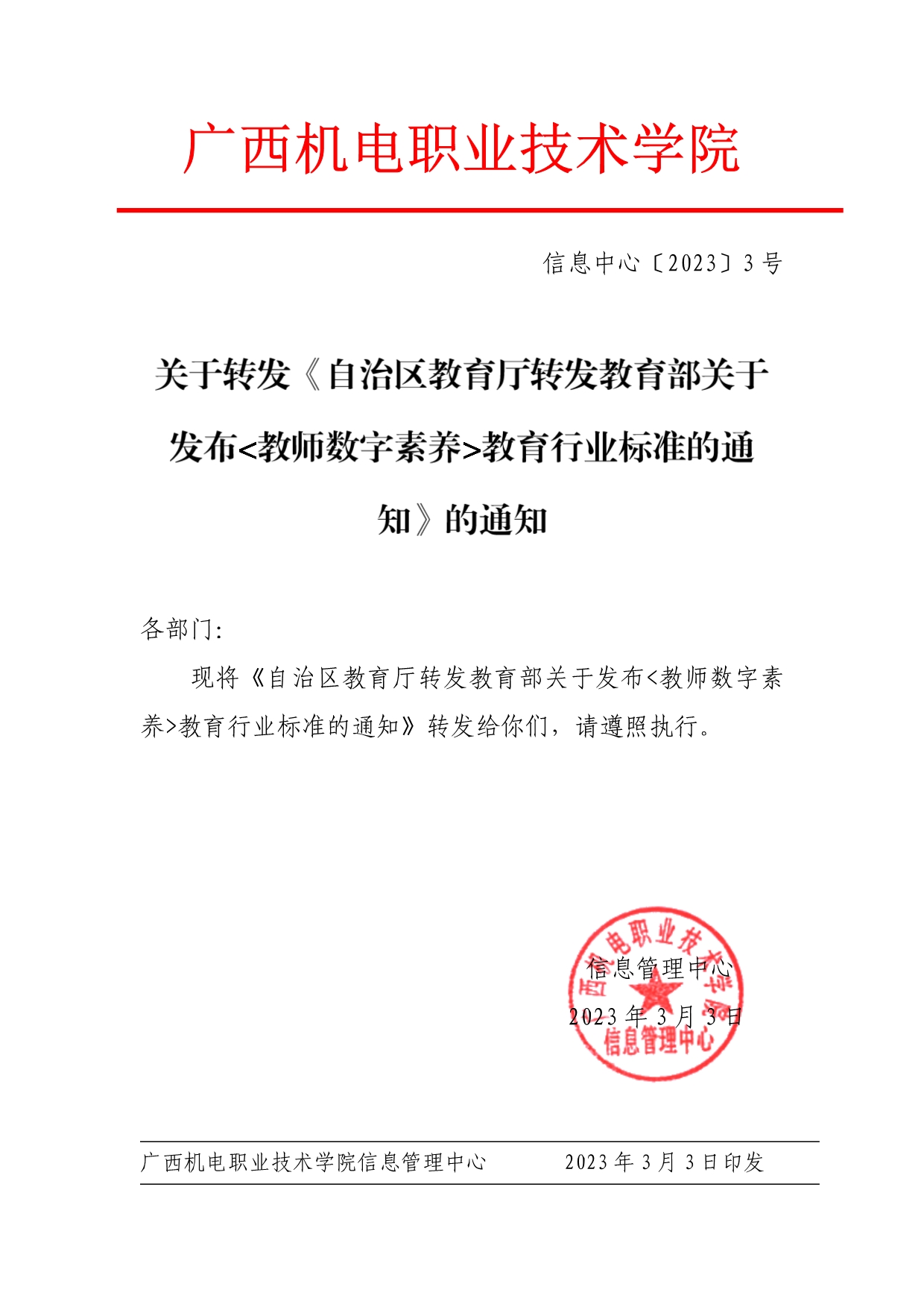 关于转发《自治区教育厅转发教育部关于发布教师数字素养教育行业标准的通知》的通知