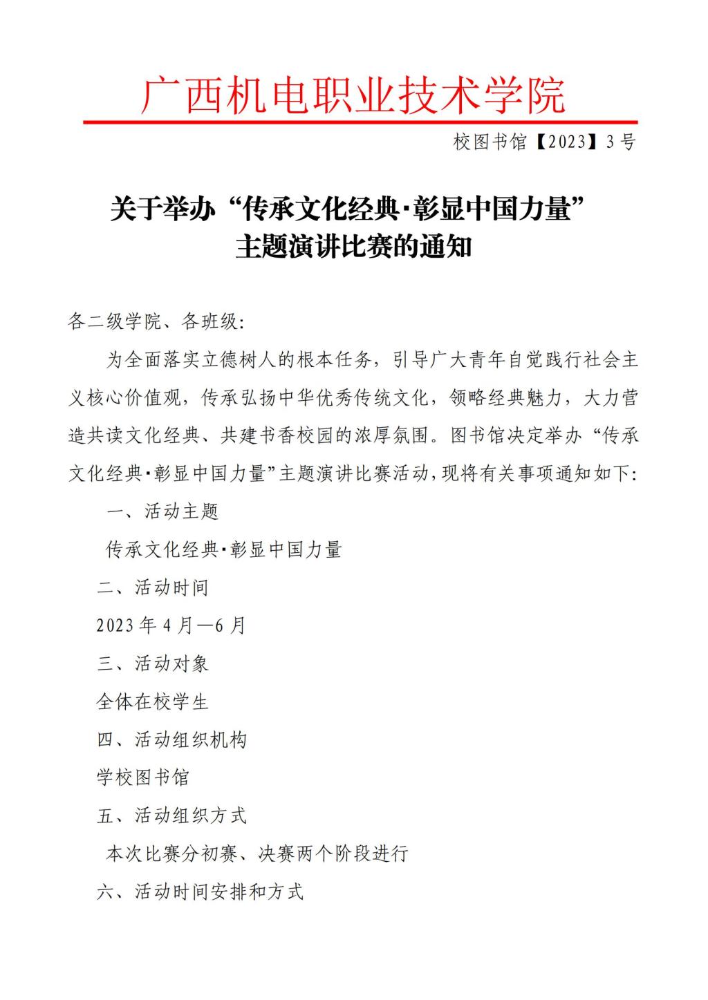 关于举办“传承文化经典 彰显中国力量”主题演讲比赛的通知