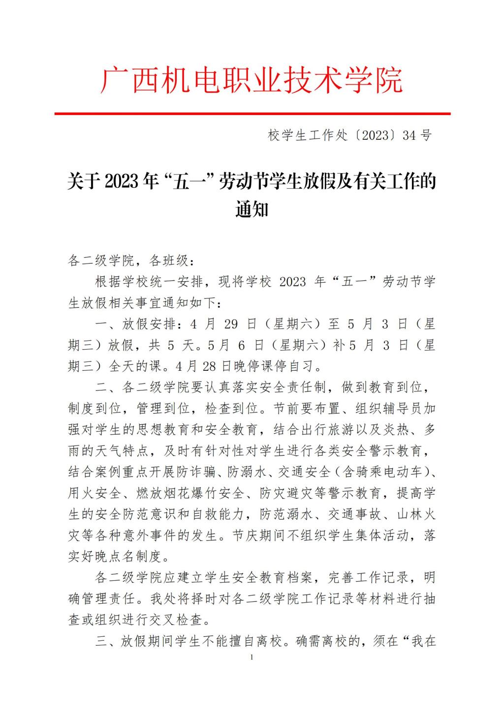 关于2023年“五一”劳动节学生放假及有关工作的通知