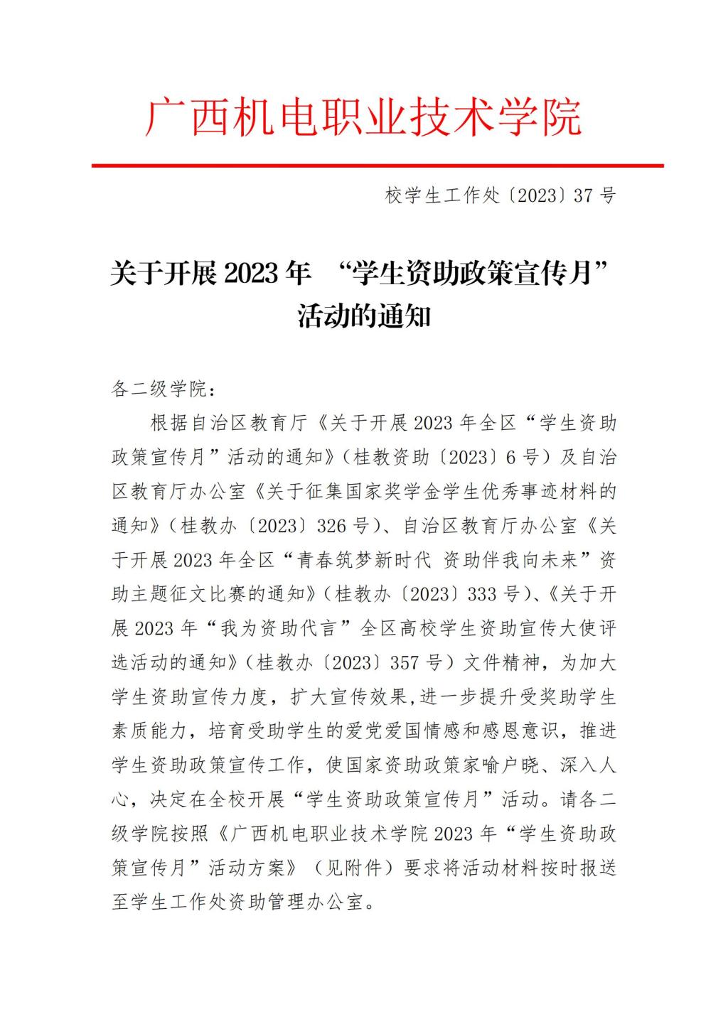 关于开展2023年 “学生资助政策宣传月”活动的通知