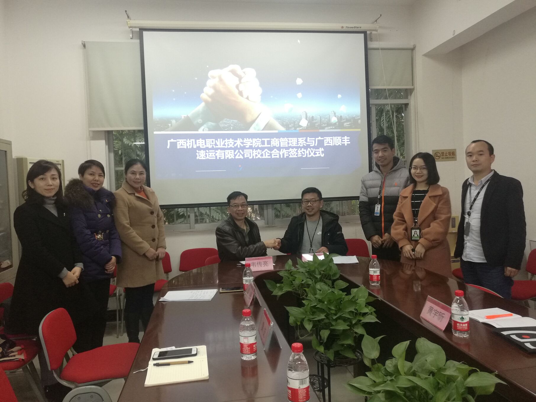 2018年12月27日下午,我院与广西顺丰速运有限公司签署校企合作协议。广西顺丰速运有限公司人力资源部部长宋宝恩、高新片区经理张首敏、招聘负责人黄宇昕、工商管理系主任韦传亮、系党总支书...