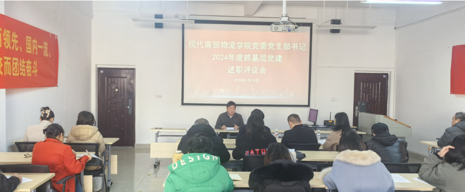 2025年1月10日,现代商贸物流学院党委在学院206会议室召开2024年度党支部书记抓基层党建述职评议会。学院领导班子成员、各支部书记及委员、党代会代表、教代会代表、党员代表参加会议。由学...