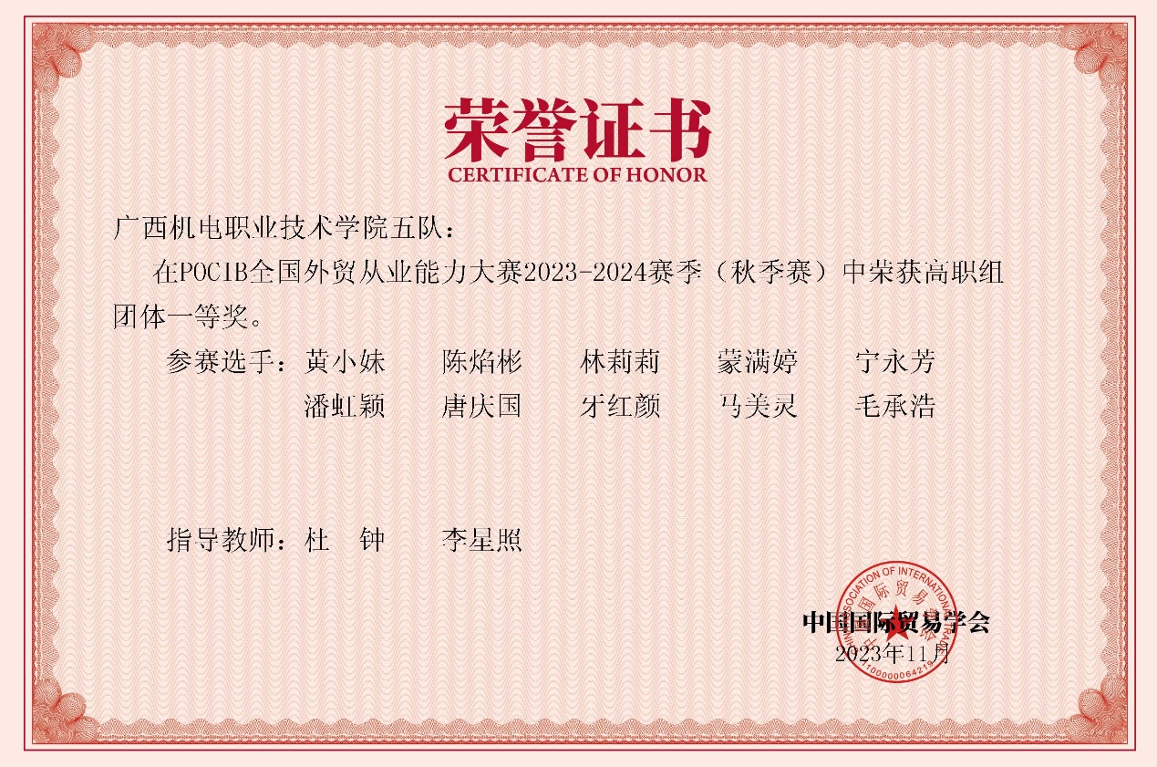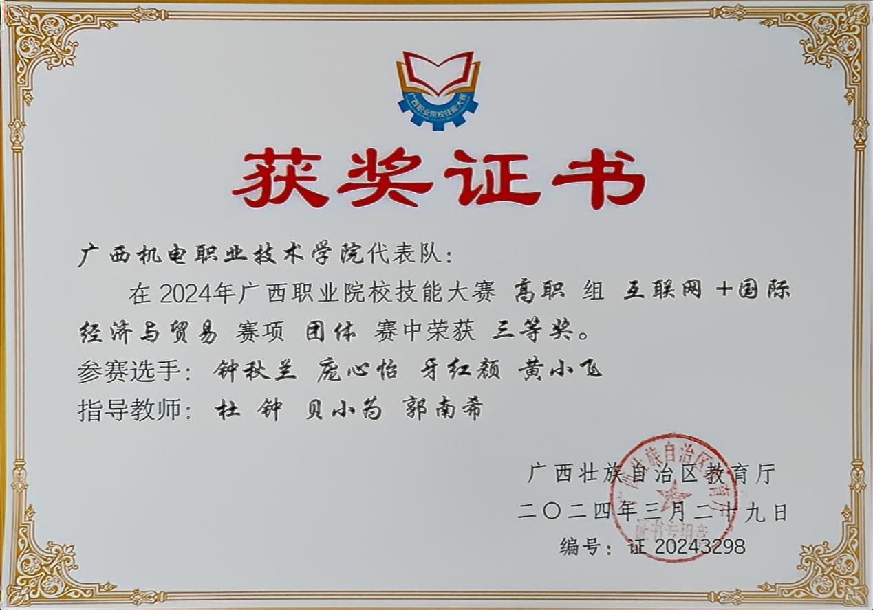 2024年广西职业院校技能大赛高职组互联网+国际经济与贸易赛项获得团体三等奖
