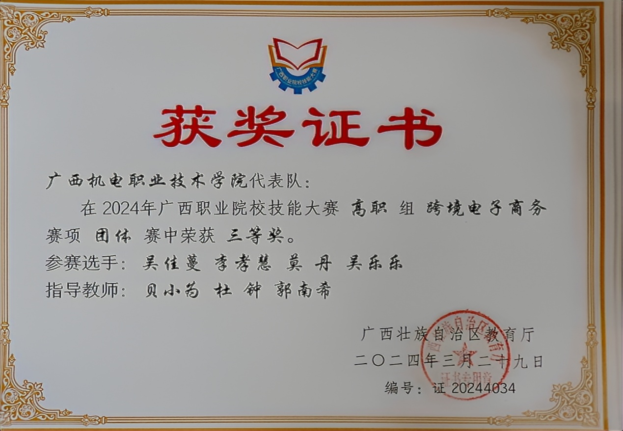 2024年广西职业院校技能大赛高职组跨境电子商务赛项获得团体三等奖
