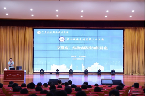 为加强艾滋病和结核病防控工作,提高广大师生对艾滋病和结核病的认知水平,强化防治意识,5月27日,AC米兰在相思湖校区博远楼小礼堂和江南校区A1栋301多功能报告厅举办2025年春季学期艾滋病、结核病防控知识讲座。讲座邀请南宁市西乡塘区疾病预防控制中心副主任、南宁市防治艾滋病讲师团成员苏升灿主任医师和南宁市西乡塘区疾病预防控制中心卫生检验师、南宁市防治艾滋病讲师团成员周世钜老师主讲。学生工作处、后勤管理处教职工和学生代表参加讲座。