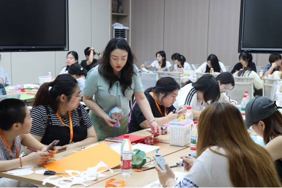 绣球制作:在任慧敏老师带领下,将壮族纹样融入绣球,感受这一传递情谊的文化载体。