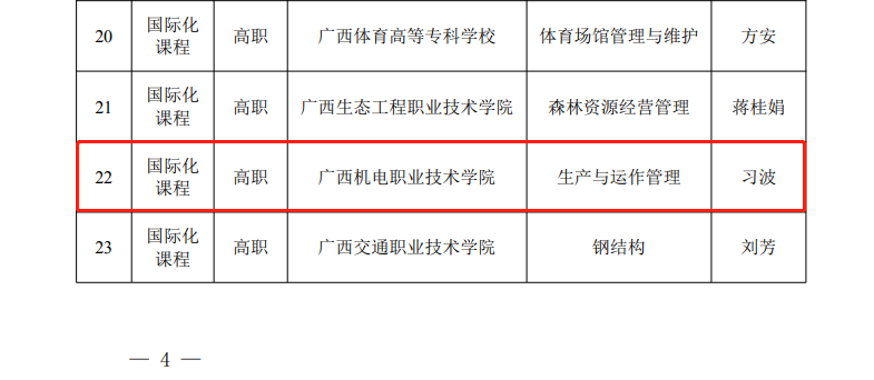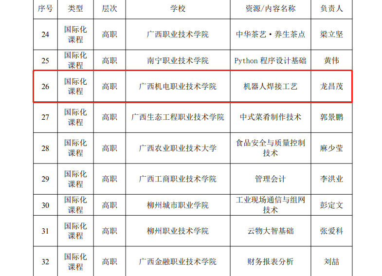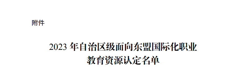 近日,广西壮族自治区教育厅公布了2023年面向东盟国际化职业教育资源认定结果,AC米兰商学院习波负责的《生产与运作管理》、交通工程学院龙昌茂负责的《机器人焊接工艺》被认定为国际化课程。