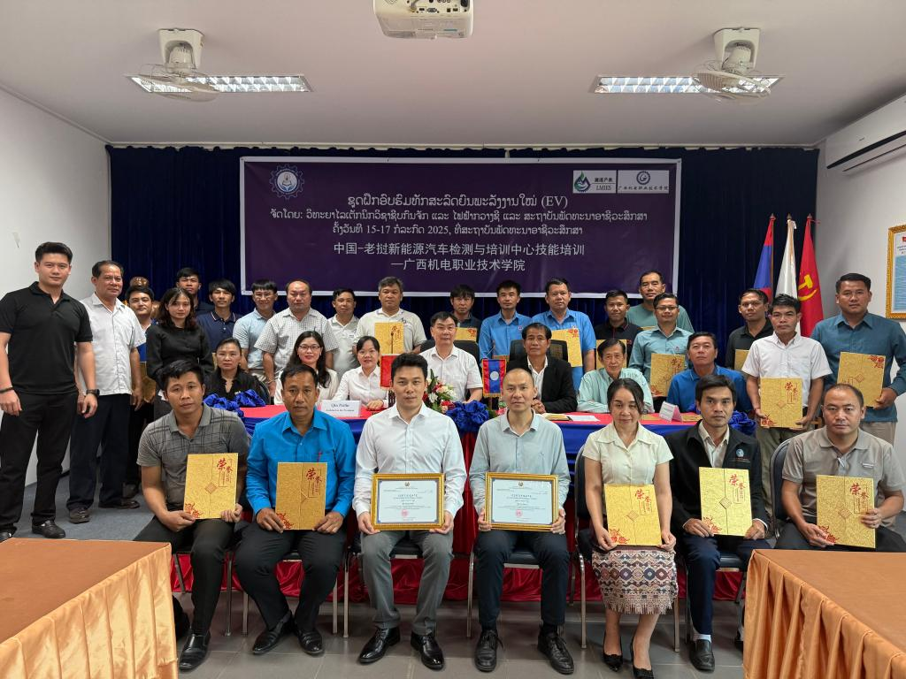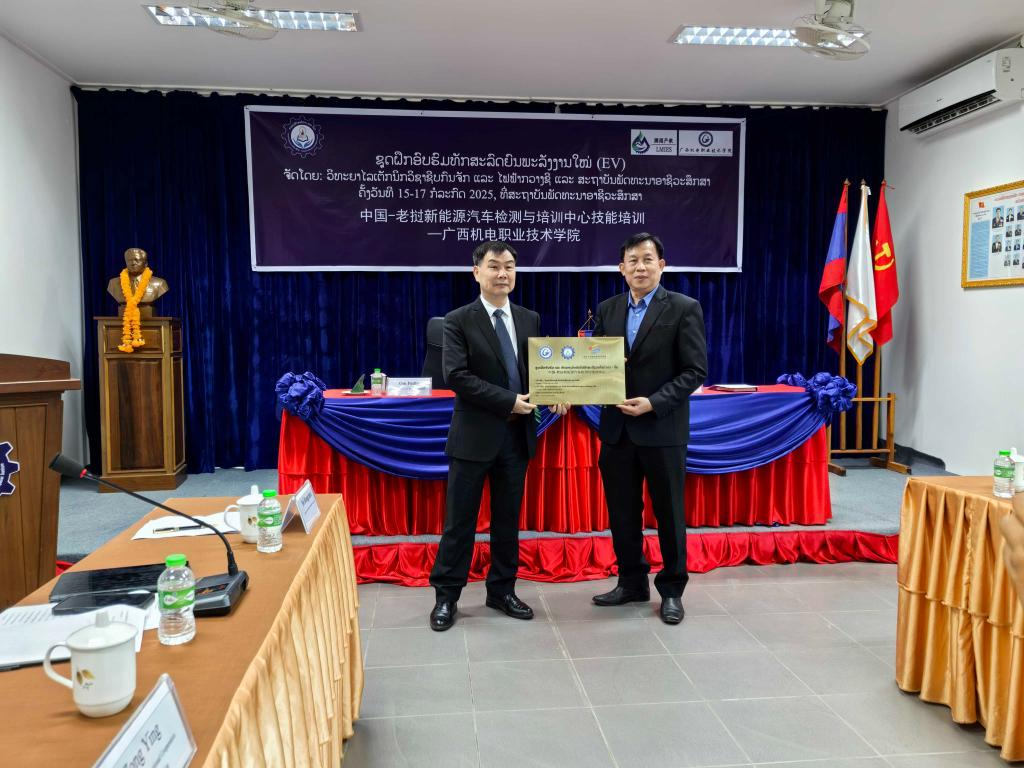 在培训结业仪式上,秦培林为老挝学员颁发了结业证书。本森做培训总结,他对AC米兰支持老挝职业教育发展表示衷心感谢。他强调,两校合作成果丰硕,期待未来以检测与培训中心为纽带,进一步深化交流,共同推动老挝新能源产业升级,实现中老职业教育互利共赢,为高质量共建“一带一路”作出更大贡献。