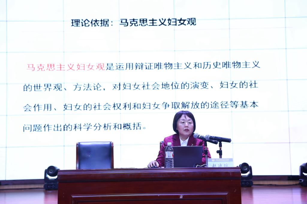 3月4日,在第115个“三八”国际妇女节来临之际,学校在博远楼小礼堂举办了“学习习近平总书记重要论述,发挥高校女教职工重要作用”专题讲座,邀请广西妇女工作领域的专家赵迪琼教授主讲。学校党委副书记程云燕主持专题讲座。