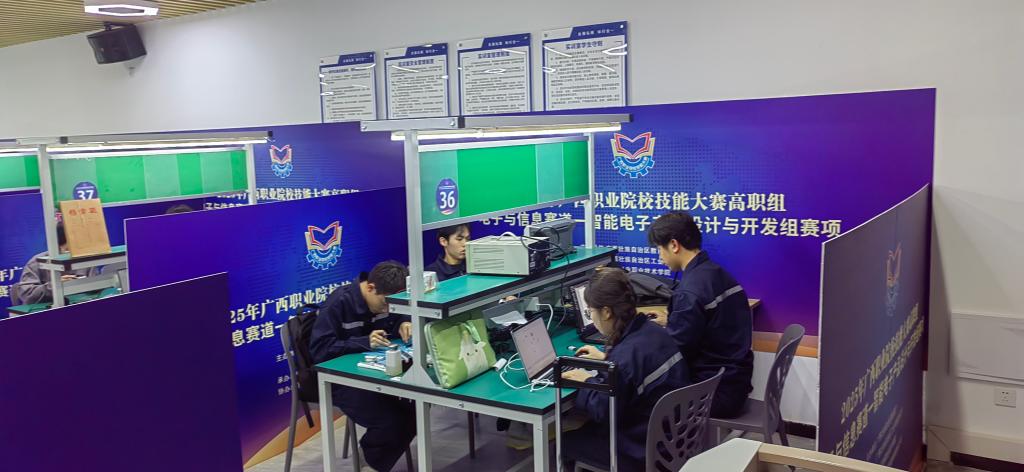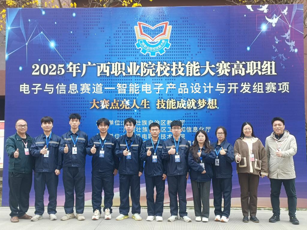 3 月 15 日,由广西教育厅主办、AC米兰承办、南宁产投华创发展有限责任公司协办的2025 年广西职业院校技能大赛高职组电子与信息赛道——“智能电子产品设计与开发组” 赛项在江南校区成功举办。本次赛项共有来自全区 22 所职业院校的 41 支代表队、149 名选手参加。