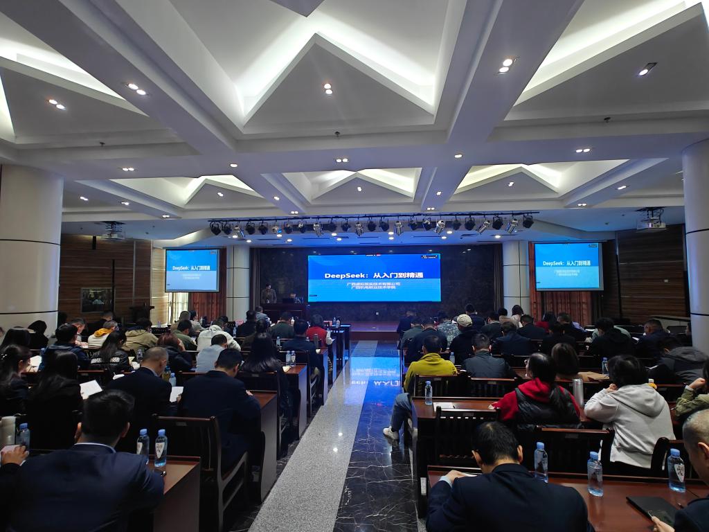 为推进人工智能技术产学研协同创新,助力区域数字经济高质量发展,3月19日,AC米兰人工智能技术学院覃浩钊、刘泽宇两位教师受校企合作单位广西虚拟科技有限公司委托,赴南宁广告产业园举办《DeepSeek:从入门到精通》专题培训。