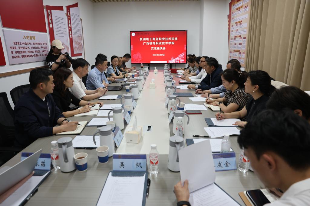 贵州电子商务职业技术学院党委书记罗松华对学校的热情接待表示了感谢,对学校利用产业园区办学促进产教融合、利用社会资源拓展社会服务领域等工作的成效表示高度赞赏,愿意和学校一起共同推进桂黔两地高等职业教育融合发展。