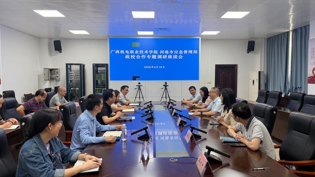 同日,调研组赴河池市应急局交流。双方就政校协同机制、应急管理系统专业化水平提升以及认证培训体系建设展开深入研讨。刘捷强调,学校将整合科研资源,助力应急管理体系现代化建设。河池市应急局负责人对合作表示欢迎,认为此次交流为应急管理领域人才培养开辟了新路径。
