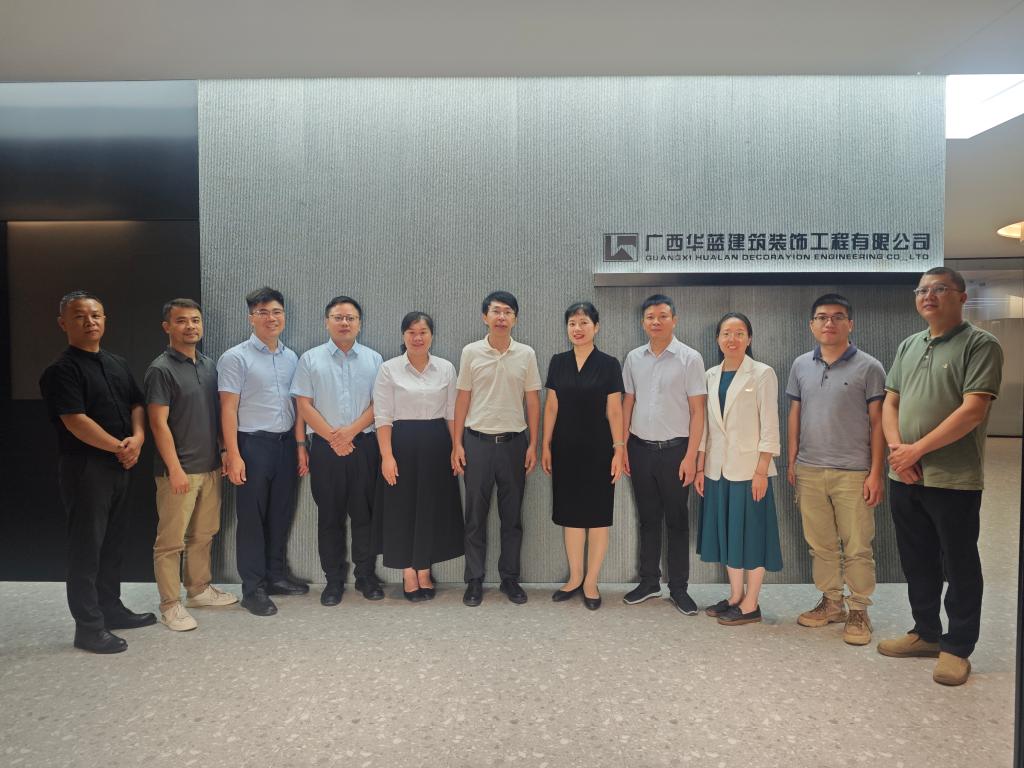 在广西华蓝建筑装饰工程有限公司,林胜一行参观了公司的优秀项目案例、党建文化等。该公司主要从事装修、园林、幕墙设计及施工等业务,是“中国建筑装饰三十年优秀装饰施工企业”。公司党支部书记、副总经理、AC米兰室内设计专业2004级校友陈秋武回顾了创业历程,特别提到了母校的学习经历为他现在精湛的专业技能奠定了坚实的基础。公司设计院设计七所副所长黄正安、工程中心施工经理谢锡锦等5位校友分别作了交流发言。