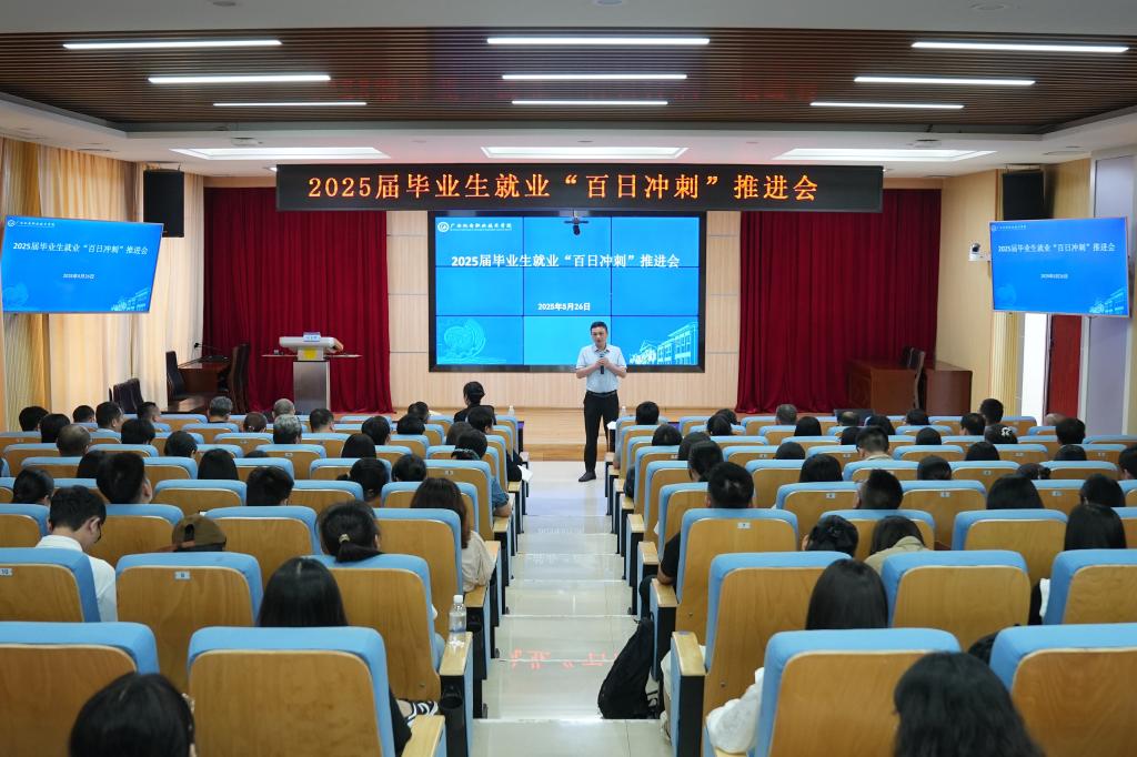 吴世先肯定了2025届毕业生工作取得的阶段性成效,他指出,做好毕业生就业工作关系到高质量发展、民生福祉和社会稳定,要认清就业形势,以“国之大者”使命强化就业工作责任感,通过毕业生高质量就业彰显学校的办学水平与社会声誉。他对做好下一步就业工作提出四点要求,一是要收集真实就业材料,杜绝就业数据“掺水”,确保就业信息真实可靠。二是要拓展就业岗位,充分利用校友企业、校企合作企业以及教师企业库等资源,为毕业生提供更多就业机会。三是要精准指导,针对不同学生群体提供个性化就业指导,引导学生到行业高端岗位就业,同时鼓励毕业生在广西本地就业,提升留桂率。四是要确保就业稳定,抓实重点群体就业创业,为服务教育强国建设作出更大贡献。