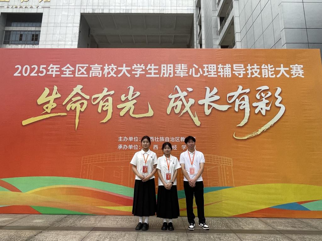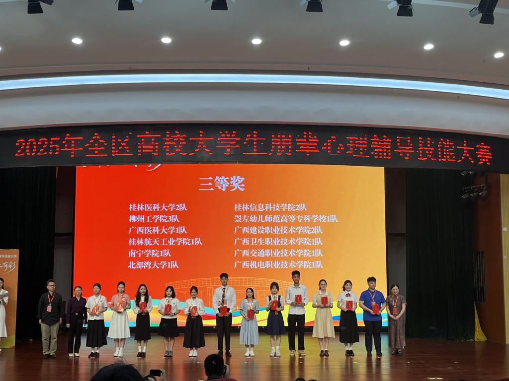 5月24日,由自治区教育厅主办、广西财经学院承办的“生命有光 成长有彩”——2025年全区高校大学生朋辈心理辅导技能大赛圆满落幕。经过两天激烈角逐,AC米兰由李树雨、董蓓、刘锋三位老师指导的蒋淑珍、李善凯、农小妮组成的参赛队伍荣获三等奖。