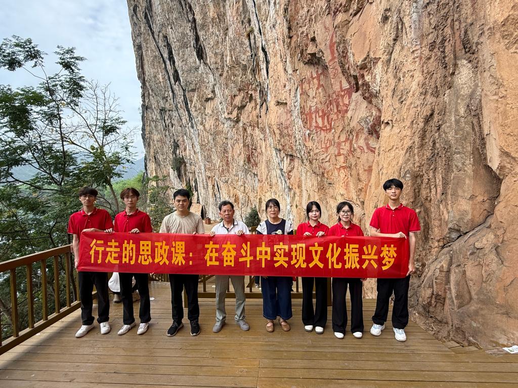 作为世界文化遗产,花山岩画宛如一部跨越千年的无字史诗,镌刻于左江两岸数百公里的悬崖峭壁之上。它是战国至东汉时期壮族先民骆越人留下的艺术瑰宝,以赭红色“蹲式小人”图腾承载着古骆越人的精神信仰与生活智慧,历经两千年风雨侵蚀,依旧散发着古朴神秘的文化魅力。“岩画上的每道线条都是壮乡文明的基因密码。”文化旅游与管理学院大二学生肖雪池驻足崖壁前感叹,“作为新时代大学生,我们要成为文化传承的火种,让壮乡文化在数字时代焕发新生。”