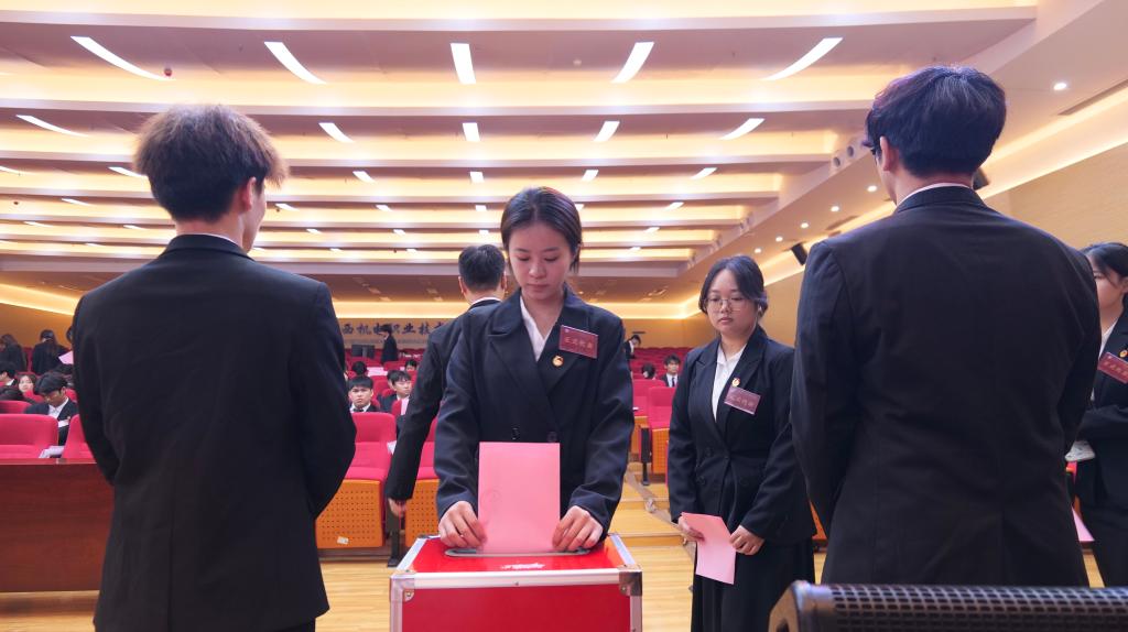 大会上,学生代表举手通过了选举办法、候选人名单、选举程序等,随后代表们按程序有序进行了投票选举,最终薛峥麒、谭雅心、陈葆耀、韦海炟、石鑫亚5位同志当选第三十一届学生会主席团成员,王樱燕、甘汐然、阳哲鸣、吴明乾、陈雪梅、林雄荣、唐承诚、徐英辉、黄玉洁9位同志当选第三十一次学生代表大会常任代表。