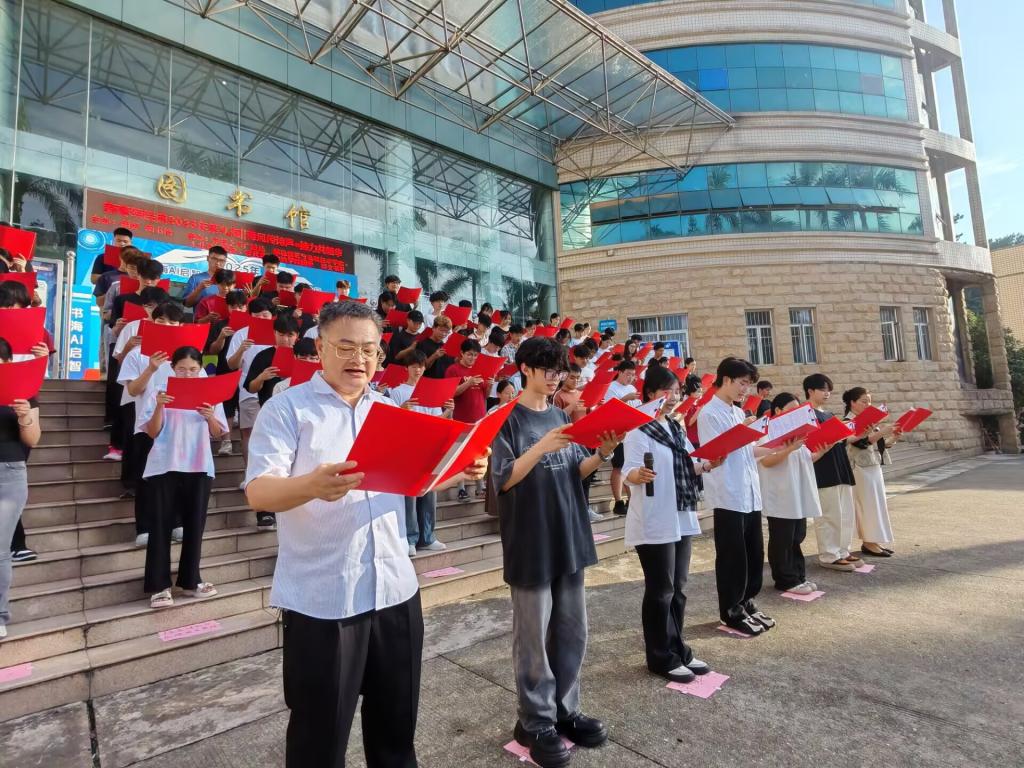 6月10日,学校在图书馆小广场举办“青风传诗声·接力共韶华”经典诵读主题活动。来自各二级学院的师生代表组成诵读方阵,以饱满热情深情演绎经典名篇,在诵读中重温峥嵘岁月,汲取奋进力量。
