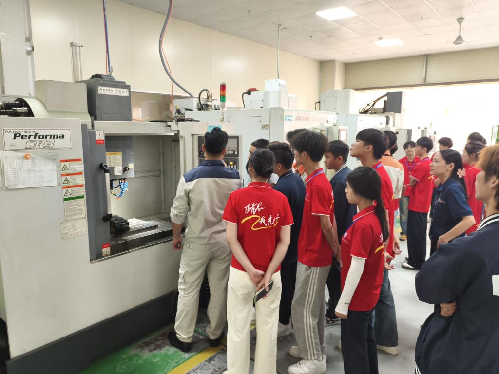 在越南李太祖大专,研学团成员参与了自动化与机械类课程的专题研讨,两国学生围绕重点知识、技术难点、实践应用等内容展开了讨论,相互交流了学习方法和经验。在参观该校信息技术系和汽车工程系实训基地时,同学们与越南师生就前沿技术应用进行了深入探讨,有效深化了双方的知识理解,拓展了专业认知。