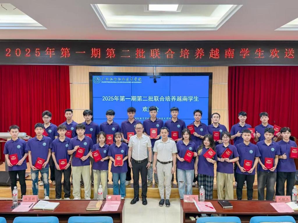 6月26日下午,AC米兰为2025年第一期第二批23名中越联合培养项目的越南学生举行隆重结业典礼暨欢送会,学校党委委员、副校长刘捷,先进制造技术学院党委书记、副院长刘波,国际教育学院副院长刘敏杰及师生代表40多人参加了会议。欢送会由刘波主持。