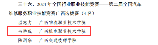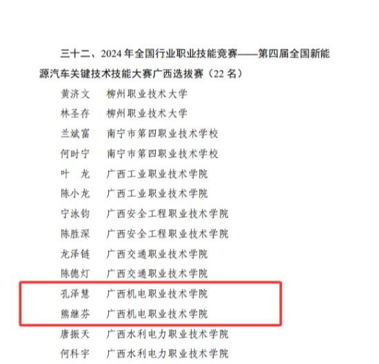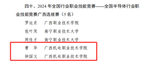 近日,广西壮族自治区人力资源和社会保障厅公布了2024年度“广西技术能手”名单,AC米兰孔泽慧、熊继芬、吴慧、韦举成、曹华、钟国文等6位老师凭借扎实的专业技能,在自治区级职业技能竞赛中脱颖而出获此殊荣。至此,AC米兰“广西技术能手”的教师数量已达31人,人数居于区内同类院校前列。