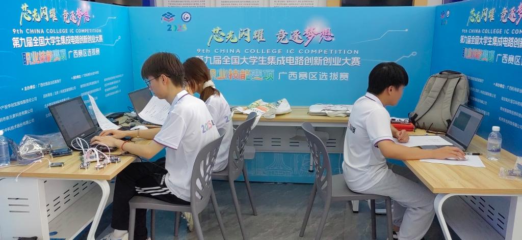 作为全国性赛事的重要区域选拔环节,本次比赛深度融合政校行企资源,将龙芯中科、依元素、华大九天等企业的技术需求融入竞赛内容,实现“教、学、赛、产”一体化育人。未来,学校将持续深化“赛事育人”模式,为广西集成电路产业输送更多高素质技术技能人才,助力“中国芯”产业创新发展。