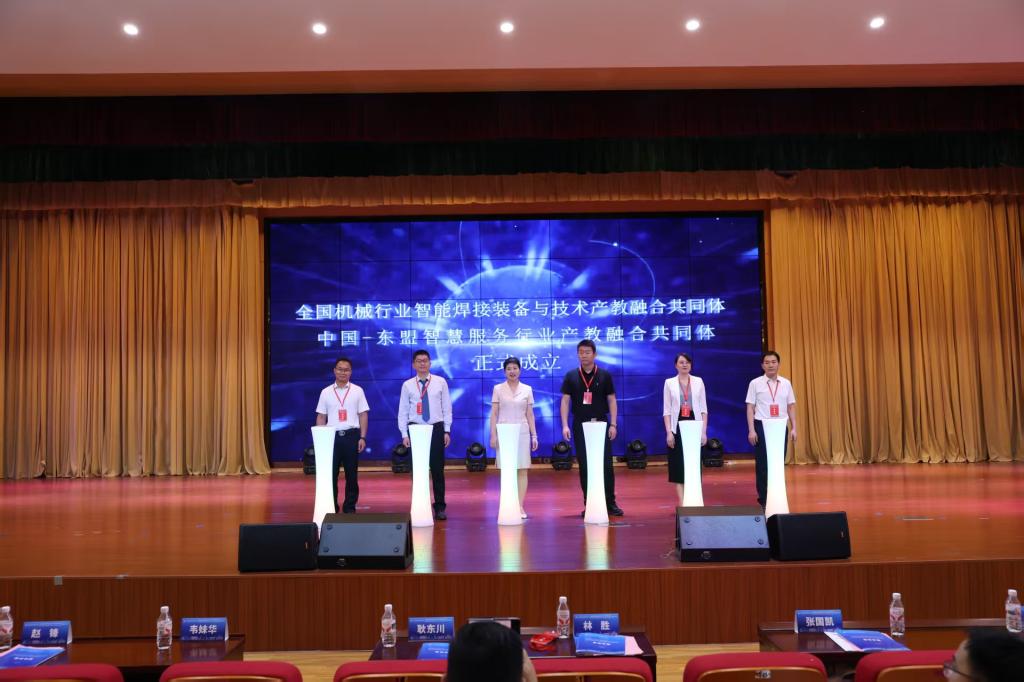 7月25日,全国机械行业智能焊接装备与技术产教融合共同体、中国—东盟智慧服务行业产教融合共同体成立大会在学校博远楼小礼堂召开。