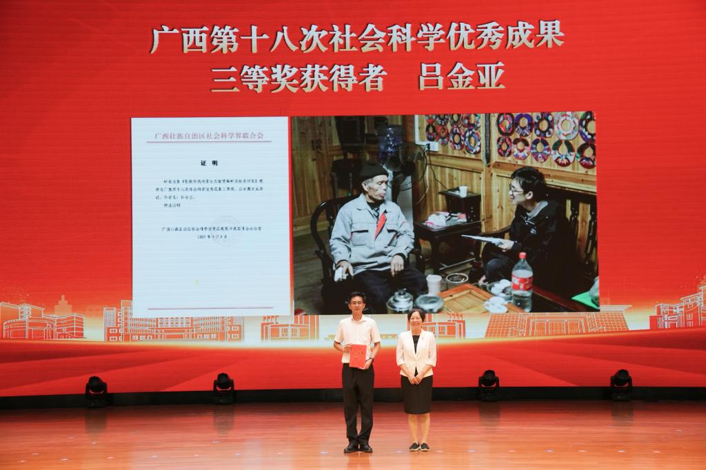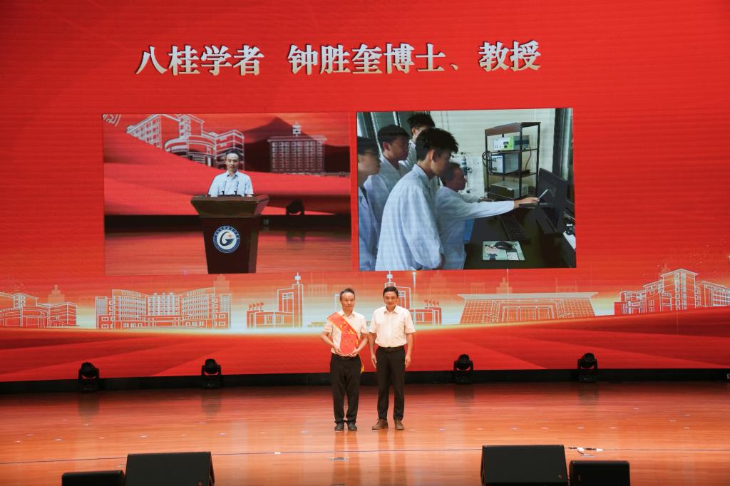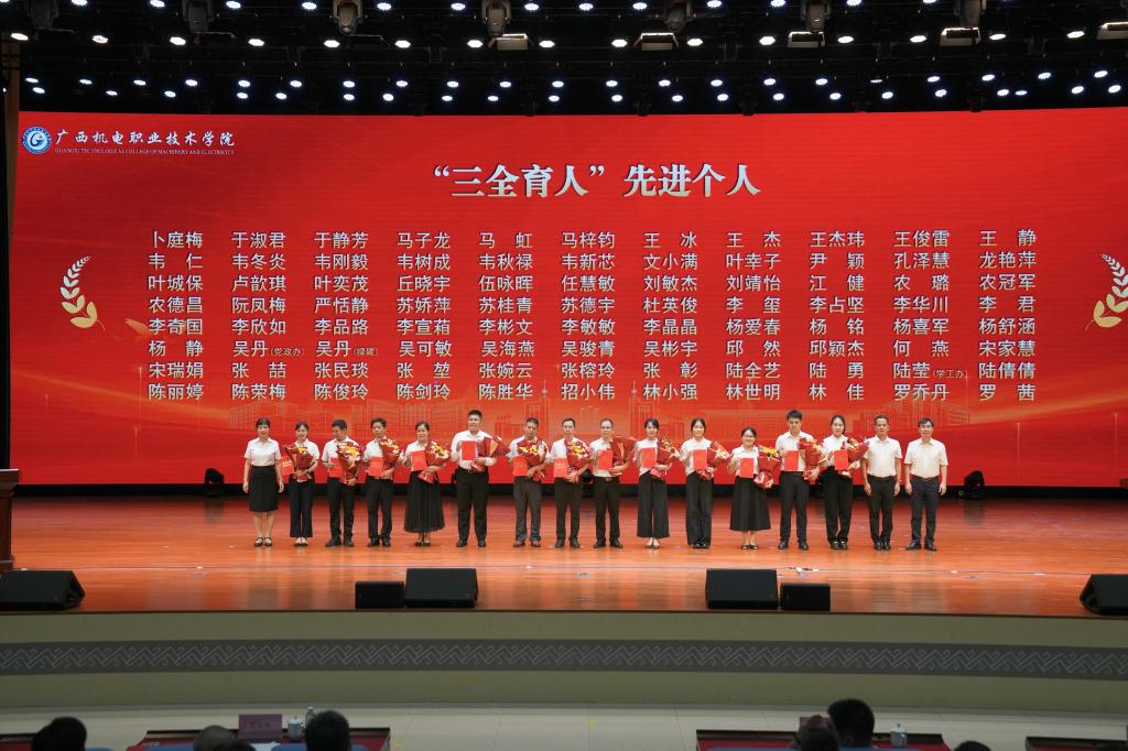 会上,学校党委委员、副校长林胜宣读了国家级先进个人表彰名单、广西社会科学优秀成果奖表彰名单、自治区级先进集体和先进个人表彰名单,以及学校《关于表彰2025年度学校“三全育人”先进集体、先进个人和机电最美教师的决定》,全校共有3个部门(单位)获得“2025年度学校‘三全育人’先进集体”荣誉称号、10名同志获得“2025年度学校‘三全育人’机电最美教师”荣誉称号、171名同志获得“2025年度学校‘三全育人’先进个人”荣誉称号。