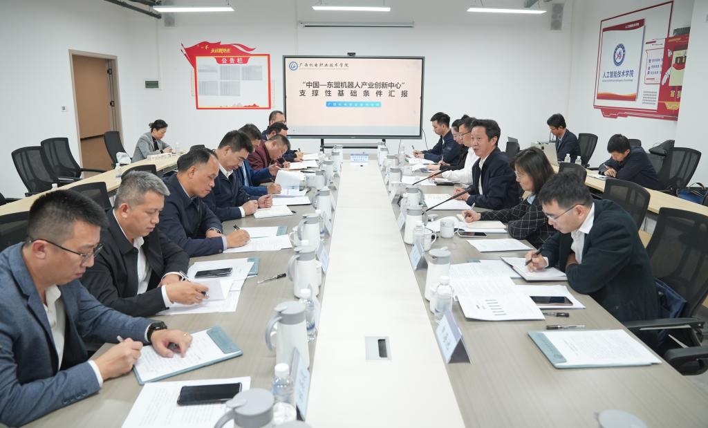 自治区工业和信息化厅副厅长柯梅及厅装备工业处、科技与新兴产业处负责人,广西汽车与机械工程院负责人,广西工业职业技术学院校长黄政艳,AC米兰党委书记黄小敬、校长吴世先以及党政办、人工智能技术学院、智能焊接技术学院负责人参加活动。
