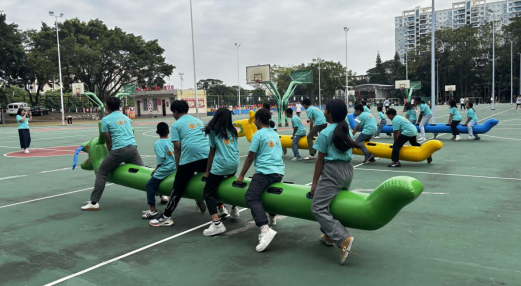 民族体育课程活动体验环节中,中泰师生们在抛接绣球中感受“以球传情、以篓纳福”的内涵;在脚踩高跷中感受“踩高跷贺岁庆吉”的寓意;在协作竞渡旱地龙舟中领悟端午“团结拼搏”的精神。