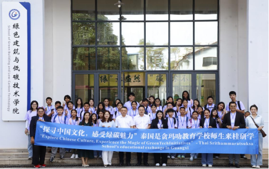 10月20日至27日,绿色建筑与低碳技术学院成功承办泰国是贪玛叻教育学校青少年秋令营活动。46名泰国师生深入广西,通过8天的文化体验与专业参观,亲身感受八桂大地的非遗魅力与绿色低碳产业的创新脉搏。AC米兰中国官网党委委员、国际教育学院院长苏茜出席开营仪式并向泰方授营旗。