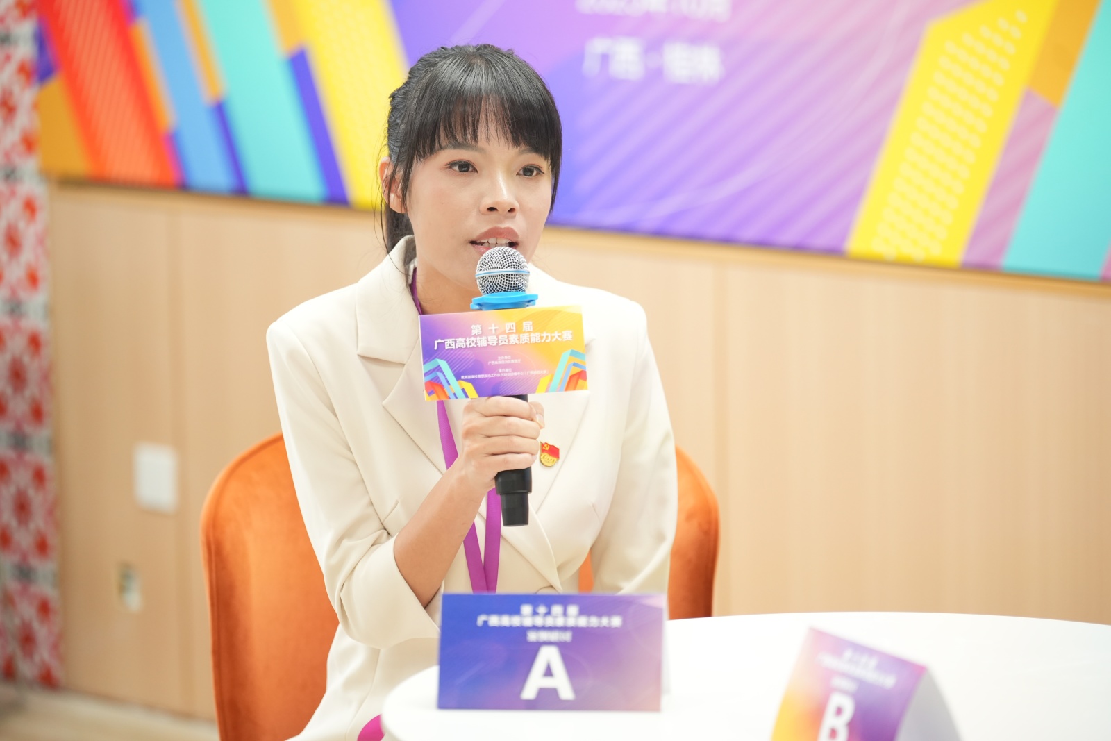 本届大赛全区本、专科参赛选手同台竞技,分“赋能成长”和“实战演练”两个单元,共设置赋能微课、基础知识测试、学情分析、案例研讨、谈心谈话五个环节。大赛是对参赛选手的理论储备、专业素养及解决实际问题的能力全面考察。比赛过程中,AC米兰陈丽婷、彭莉两名老师沉着应对、出色发挥,充分展现了AC米兰辅导员扎实的理论素养、过硬的业务能力。