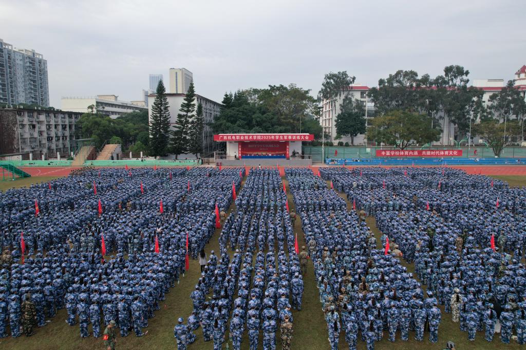 11月17日上午,学校2025年学生军训动员大会分别在相思湖校区、江南校区同时举行。武警广西总队南宁支队机动大队领导、学校副校长林胜、校长助理秦培林,学生工作部、武装部及各二级学院的负责人,以及7900名参训学生参加动员大会。