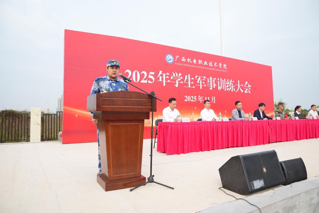 会上,武警南宁支队机动大队领导指出,军训是青年学子提炼品格、升华精神的重要途径,希望同学们在为期两周的军事训练当中锤炼坚强的意志品质和养成优良的作风,并将良好的习惯延续到未来的实训车间和理论课堂,让军魂滋养匠魂,努力成长为有理想、敢担当、能吃苦、肯奋斗的新时代青年。