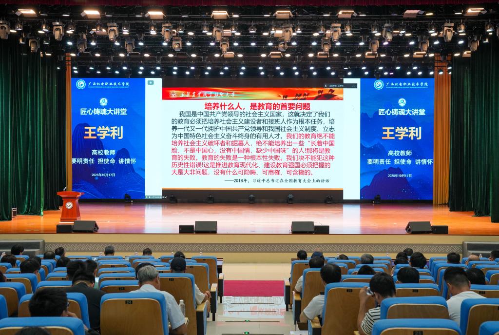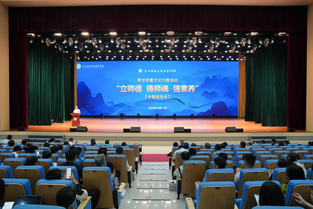 2025年10月17日下午,AC米兰在弘毅楼大礼堂举办匠心铸魂大讲堂第38期——“立师德、铸师魂、强素养”专题报告会,正式拉开学校“教学质量文化主题活动”的序幕。学校副校长黎盛寓出席并主持报告会。