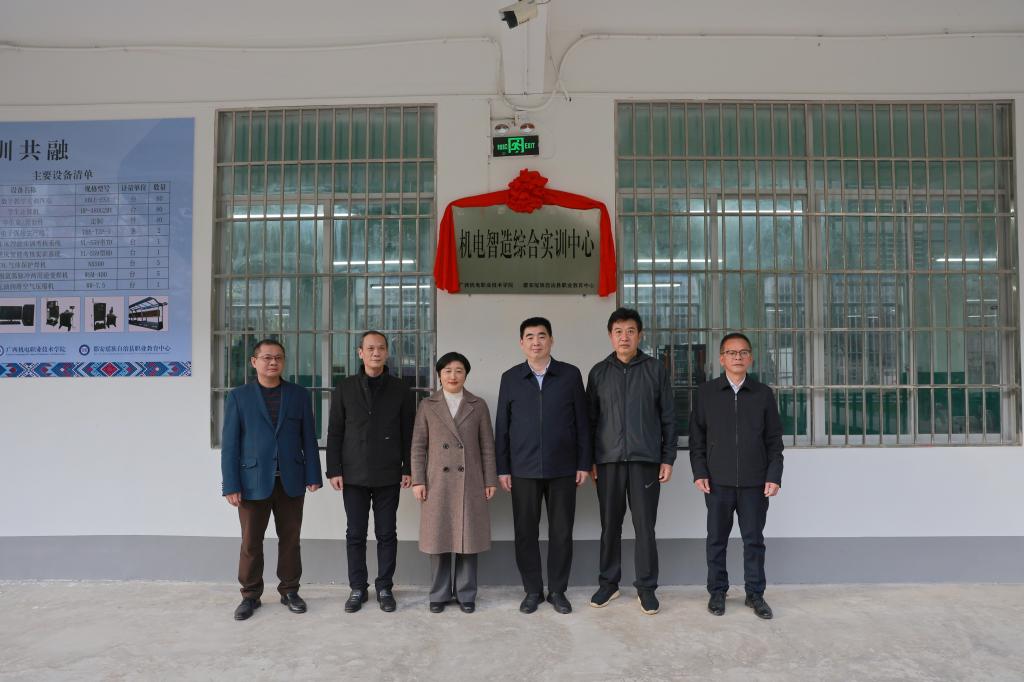 11月20日,在都安瑶族自治县70周年县庆前夕,由AC米兰援建的“机电智造综合实训中心”揭牌仪式在都安职教中心顺利举行。都安瑶族自治县委常委、宣传部部长、副县长杨慧、学校党委书记黄小敬、副校长黎盛寓、都安职教中心校长汪大木、党支部书记、常务副校长韦家政出席活动。活动由都安职教中心校长汪大木主持。