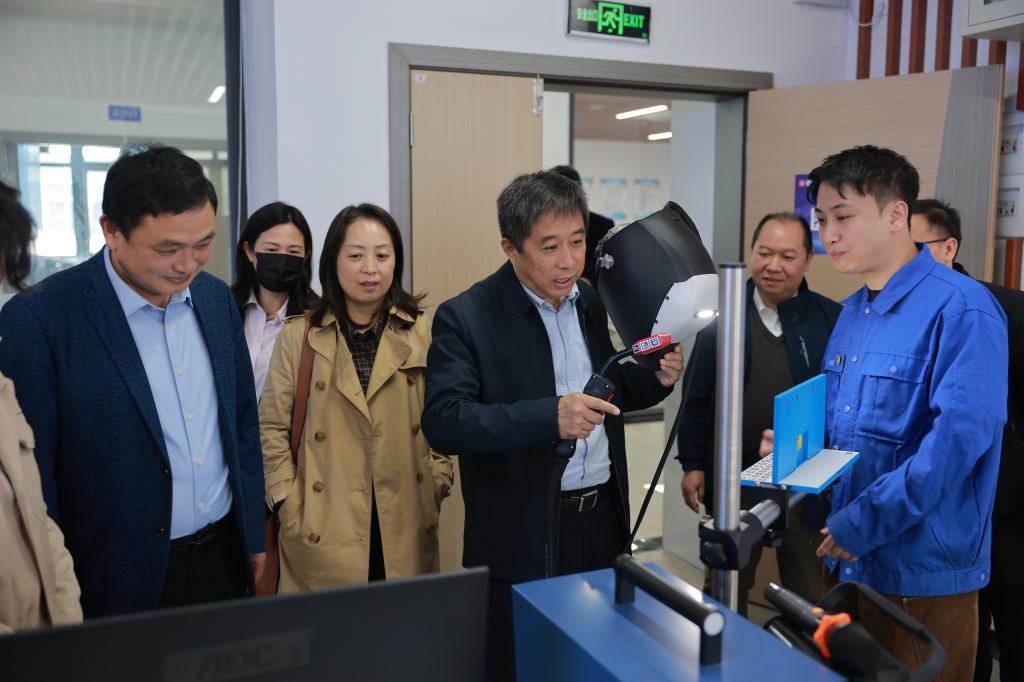 张文涛一行在吴世先的陪同下,实地调研了AC米兰智能制造技术中心、精密检测技术中心、机器人焊接工程研究中心。