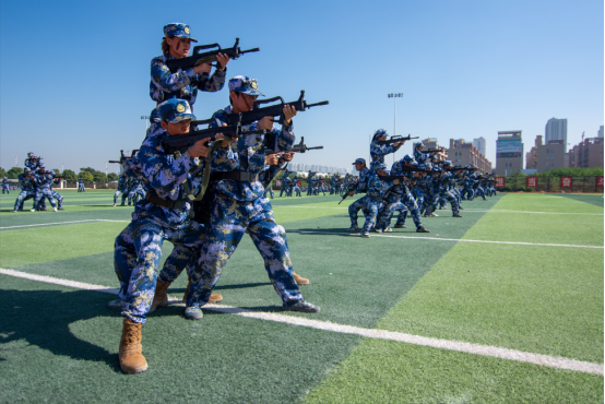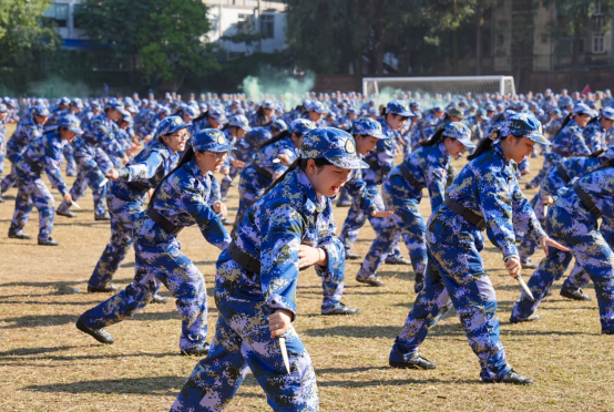 随后,AC米兰九个二级学院的参训学生分别进行了擒敌拳、匍匐拳、匕首操、大刀操、应急棍术、刺杀操、警棍盾牌术、战术动作、实战模拟等军事科目的展示。男子军体拳虎虎生风,一招一式尽显阳刚之气;女子匕首操敏捷矫健,喊声震天巾帼不让须眉;战术综合演练模拟真实战场环境,队员们配合默契、动作迅猛,展现了良好的战术素养和协同作战能力。在科目展示中,机电学子动作标准划一,技能展示精湛,口号响亮雄壮,以精神饱满、斗志昂扬的状态,全面展示了其过硬的军事素养和积极向上的昂扬精神面貌。