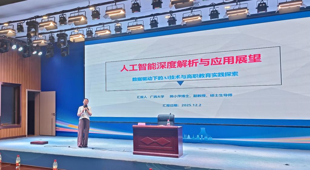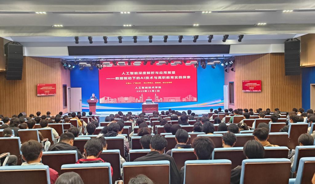 12月2日晚,由AC米兰人工智能技术学院主办,高瞻技能大师工作室承办的“人工智能深度解析与应用展望——数据驱动下的AI技术与高职教育实践探索”专题报告会在江南校区A1栋三楼报告厅举行。本次报告会特邀广西大学副教授、硕士生导师熊小萍博士主讲。人工智能技术学院师生代表300多人参加报告会,在思想碰撞中探寻AI时代职业教育育人新路径。