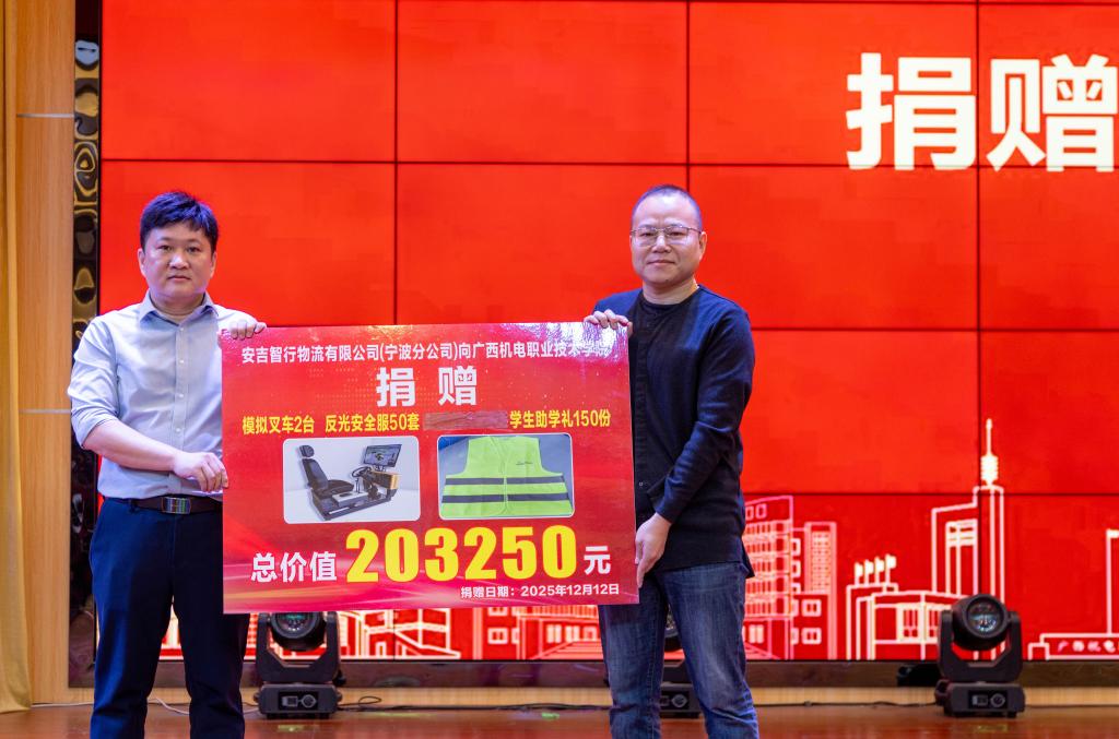 随后,安吉智行物流有限公司向学校捐赠模拟叉车、操作系统等实训设备,双方共同为“安吉物流订单班”授牌,标志着校企协同育人项目正式落地,校企合作进入实质推进阶段。