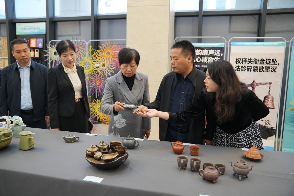 展览主要划分为“传统工艺廉洁呈现展区”“现代创意廉洁诠释展区”“优秀获奖作品展区”“机电文创产品设计”四大展区,系统呈现了廉洁主题在工艺美术与数字技术领域的多元表达,以及机电学子在相关专业领域的创新实践成果。