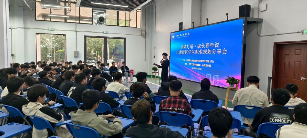 “朋辈灯塔·成长青年说”职业规划分享会在江南校区汽车学院一楼大厅同步进行。来自智能交通技术、新能源汽车技术、汽车制造与试验技术等专业各年级的10名优秀学生代表依次登台,结合自己当前学习经历、学习成果和对专业、行业及就业预期等,分别从“自我认知与行业岗位匹配”“短期技能提升与长期职业目标衔接”“职业规划起步阶段的避坑指南”等方面展开主题分享。在互动环节中,同学们积极围绕“跨专业发展可行性”“技能学习优先级”等问题踊跃提问,主题分享的发言代表,特别是大三的学长学姐,纷纷结合自身的学习和实习等经历,与同学们进行现场交流,氛围十分热烈。此次分享让学生对职业规划有了更具体的认知,有效地帮助同学们破除了“不知如何规划”的迷茫。