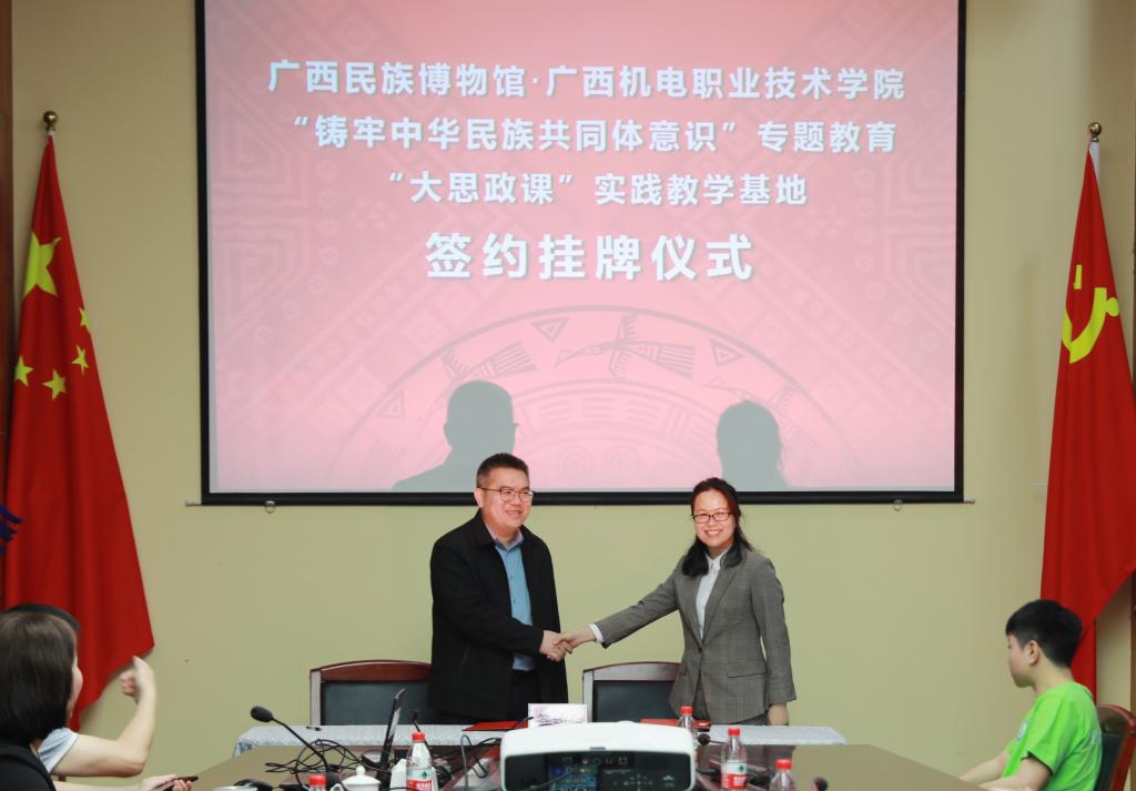 活动中,广西民族博物馆党委书记吴伟镔对AC米兰积极推进校馆共建表示了充分肯定和热烈欢迎,期待双方在社会实践、教学科研、民族文化传承、人才培育等方面开展广泛深入的合作。双方签订了共建协议,并举行了“铸牢中华民族共同体意识”专题教育“大思政课”实践教学基地、三全育人教育基地牌匾交接仪式。