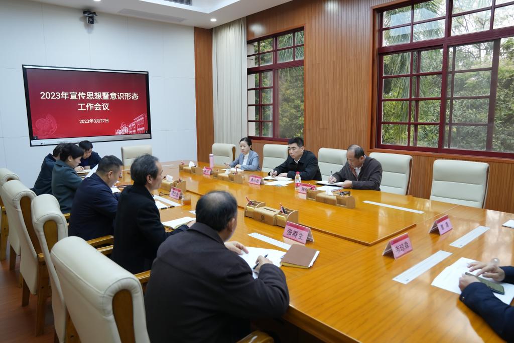 3月27日,学校在行政楼第一会议室召开2023年宣传思想暨意识形态工作会议,传达全国、全区高校思想政治工作会议精神,回顾2022年学校宣传思想暨意识形态工作重点任务落实情况,分析当前工作形势,部署2023年学校宣传思想、意识形态和校园安全稳定工作。学校党委书记黄小敬、党委副书记陈科鹤、纪委书记林华出席会议。会议由陈科鹤主持。