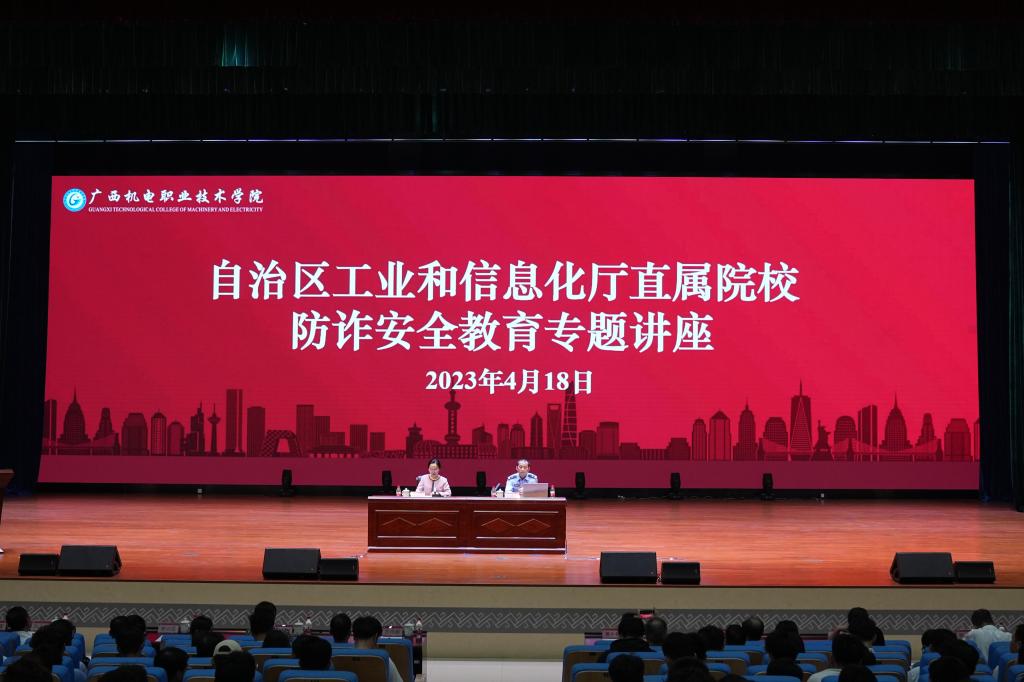 为全面加强厅属院校防诈安全宣传教育工作,进一步提升在校师生防骗识骗的能力,4月18日下午,自治区工信厅举办直属院校防诈安全教育专题讲座。讲座采取线上与线下相结合的方式,主会场设在AC米兰弘毅楼大礼堂,各直属院校在会议室、教室等地设分会场,当天共计3万余名师生参加培训。