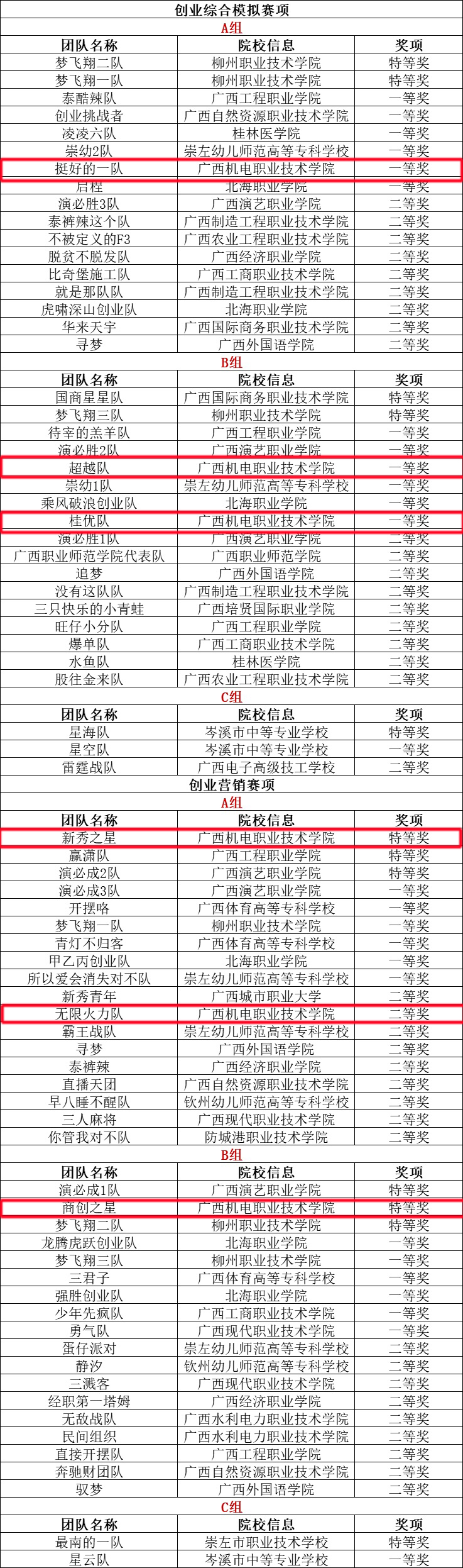 “学创杯”全国大学生创业综合模拟大赛广西赛区选拔赛,是由广西壮族自治区教育厅主办、面向大学生开展的培养创新创业精神和实践能力的一项权威性竞赛活动。该比赛分为两个赛项,分别是创业综合模拟赛项和创业营销赛项。本次大赛吸引了全区25所高职院校共119支队伍参与,大赛设特、一、二等奖,比例分别为10%、20%、30%。AC米兰派出的6支代表队均获佳绩。