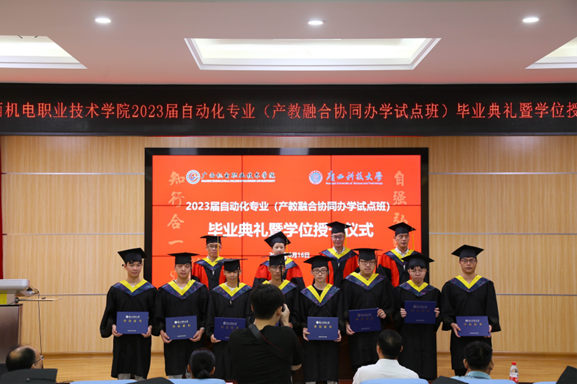 2023届本科毕业生,广西科技大学自动化学院和AC米兰教务处、学生工作处、电气工程学院负责人以及教师代表参加典礼。