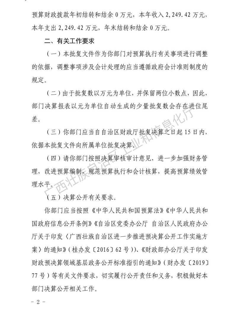 自治区工业和信息化厅关于AC米兰中国官网2019年度部门决算的批复