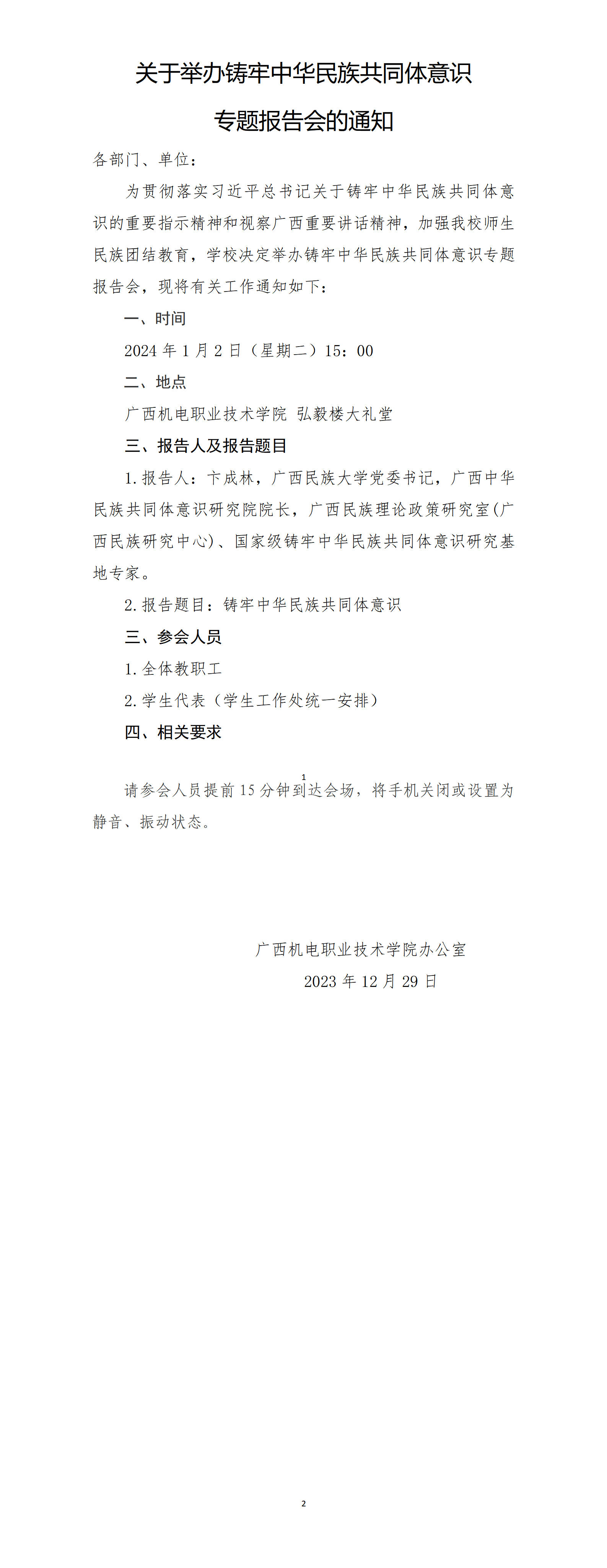 关于举办铸牢中华民族共同体意识专题报告会的通知